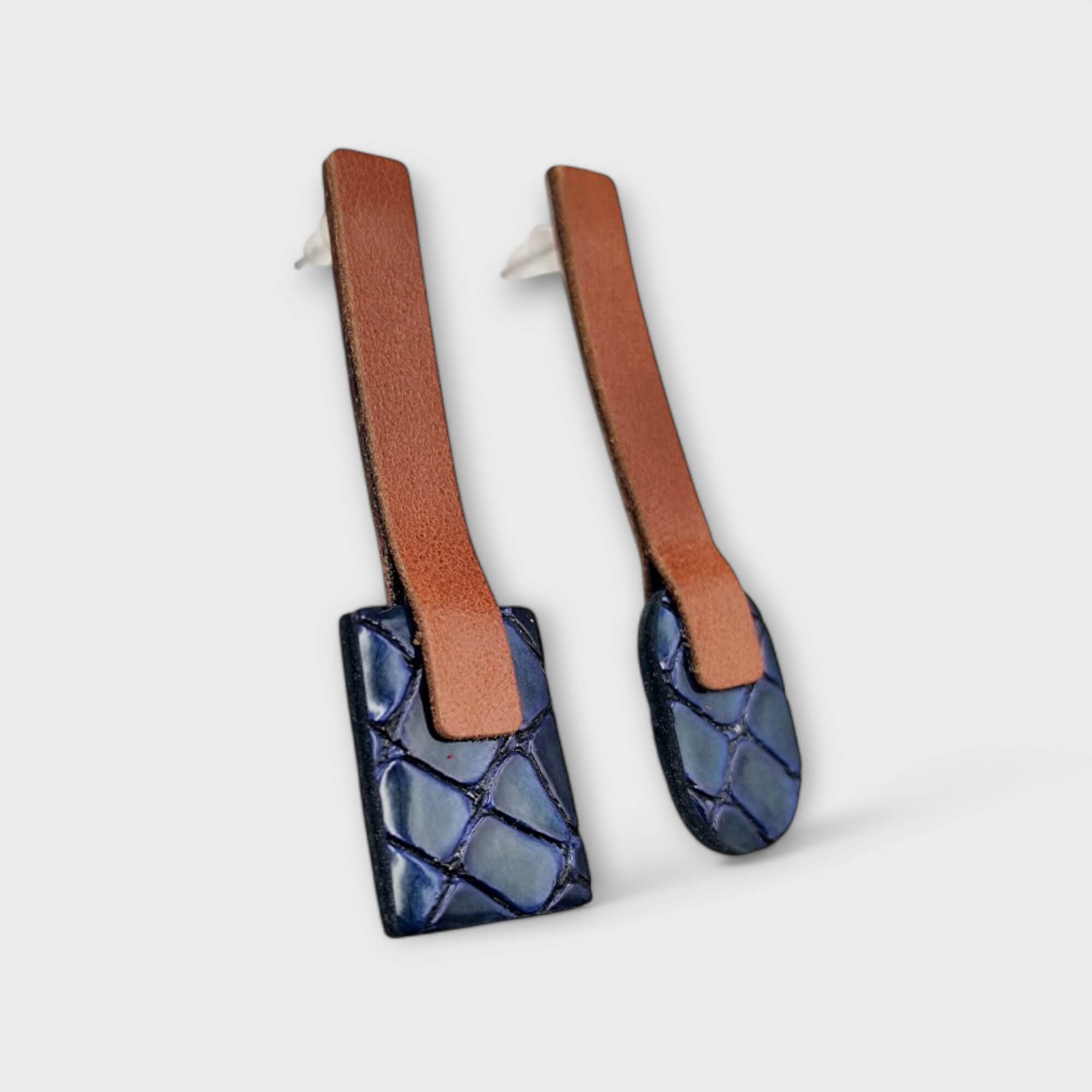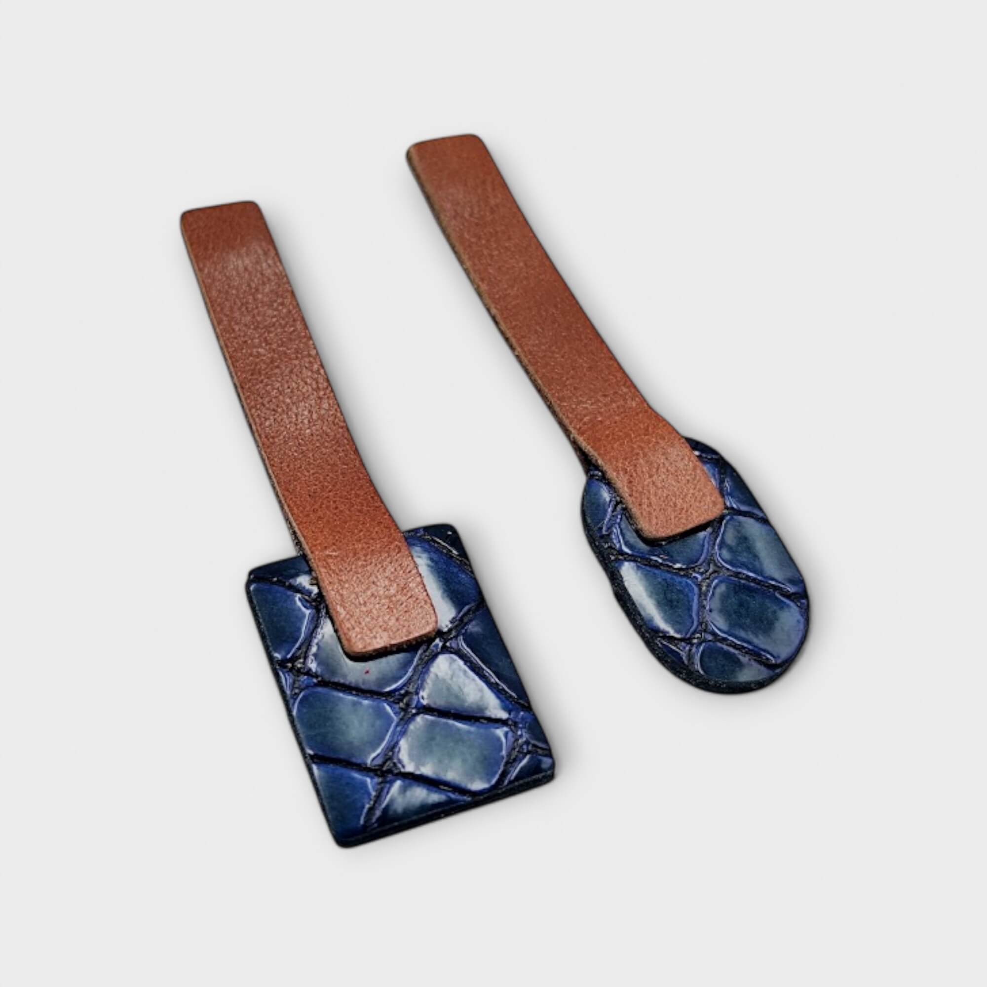 Szín: metálos fényű királykék lakk krokodil mintás bőr, konyakbarna bőr