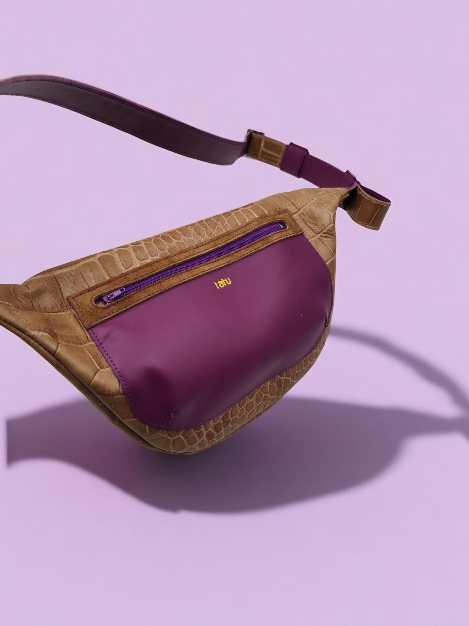 szín: camel színű krokodil nyomatos marhabőr, lila marhabőr