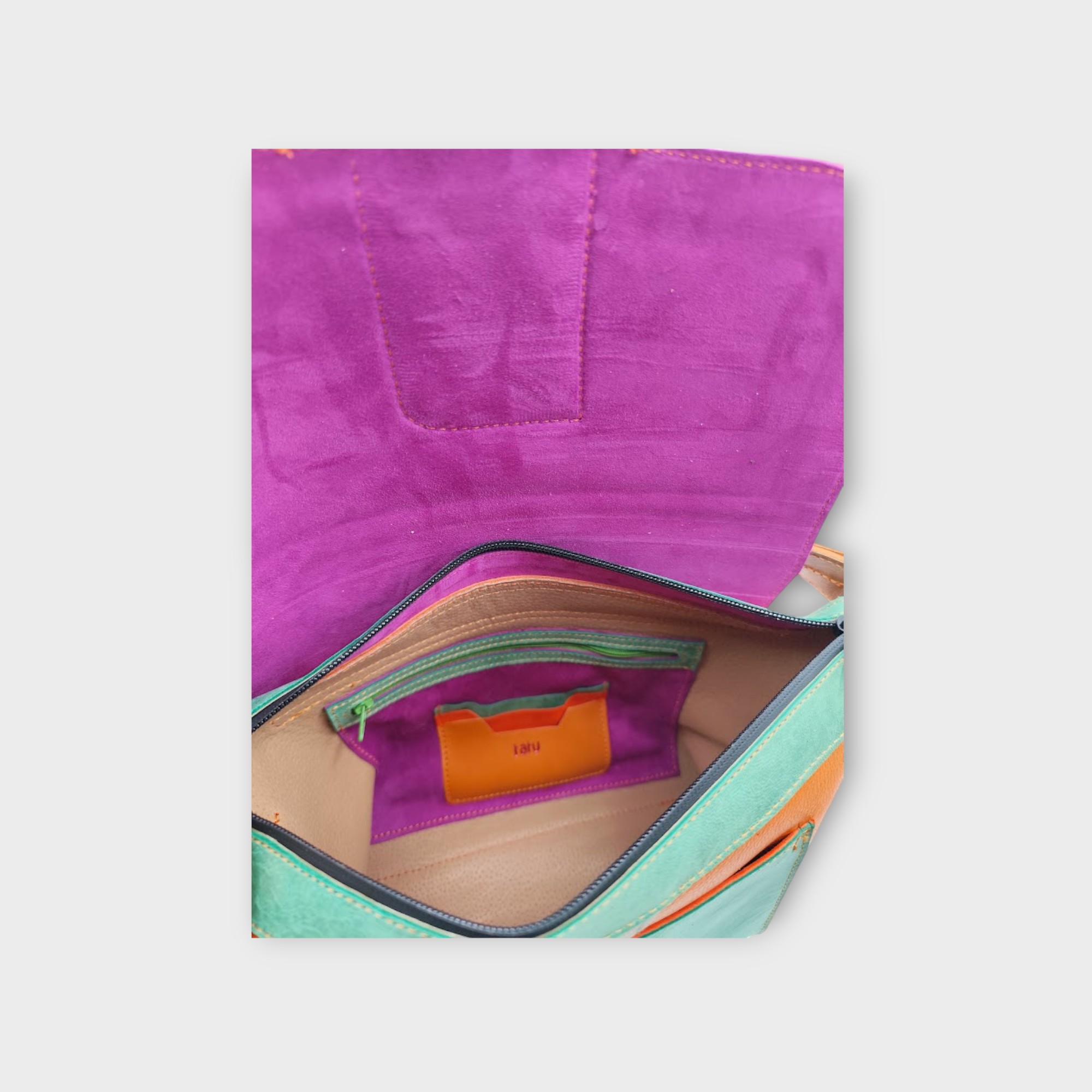 Táska beljejében 1 db cipzáros zseb és 3db kártyatartó található