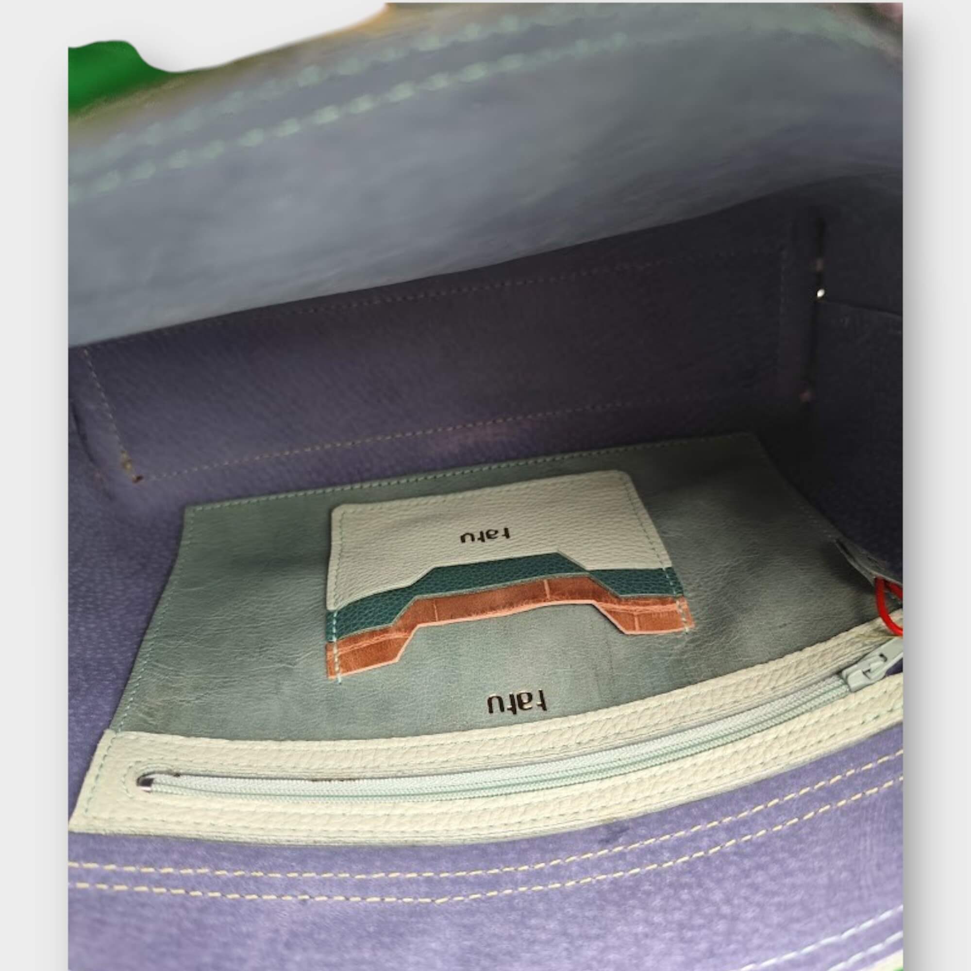 Davida kollekció kis méretű oldaltáskája. Jellegzetes aszimetrikus szabása és egyedi merész színhasználat teszi igazán izgalmassá, mely által kitűnik, az átlag megszokott dolgokat kerülve, igyekszem mindig valami különleges jellegzetes részletet belevinni az alkotásaimba. Minden táska limitált darabszámban készül. Tervezés fő szempontja a sok alkatrész mely lehetőséget ad, hogy minnél több szín összeállításban készülhessen el. Belsejében igényesen kidolgozott cipzáros zseb melyen 3 db kártyatartót is elhelyeztem a komfortos haszálat igényének megfelelve. Rövid és hosszú állásban is használható vállpánt személyre szabható, egészröviden vállon, hosszan akár átdobós táskaként keresztben is hordható.. Stílusjegye minden táskának a vízálló fekete cipzár, egyszerű plasztikusságot idézve
