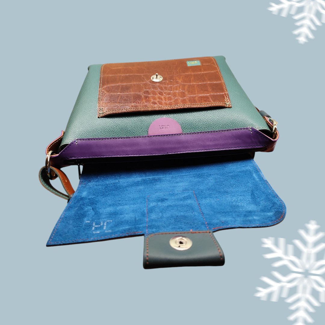 Ezt a táska modellt kifejezetten úgy terveztem, hogy minnél több alkatrészből álljon. Fő szempont a gazdag színösszeállítás lehetősége, és a leeső szabászati hulladékok is helyt találhassanak ebben a táskában. Design irányvonalamnak megfelelően készülnek.