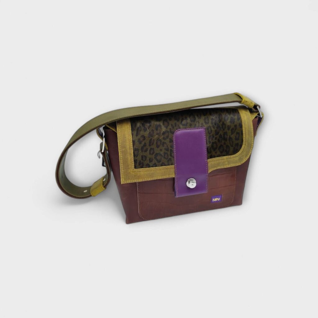 Minden táska az épp aktuális bőrválasztékom és hangulatom által komponált alkotás, sok színből álló vidám, olykor visszafogott színösszeállítás is előfordul. Egyedi egy-egy darabos limitált táskák.