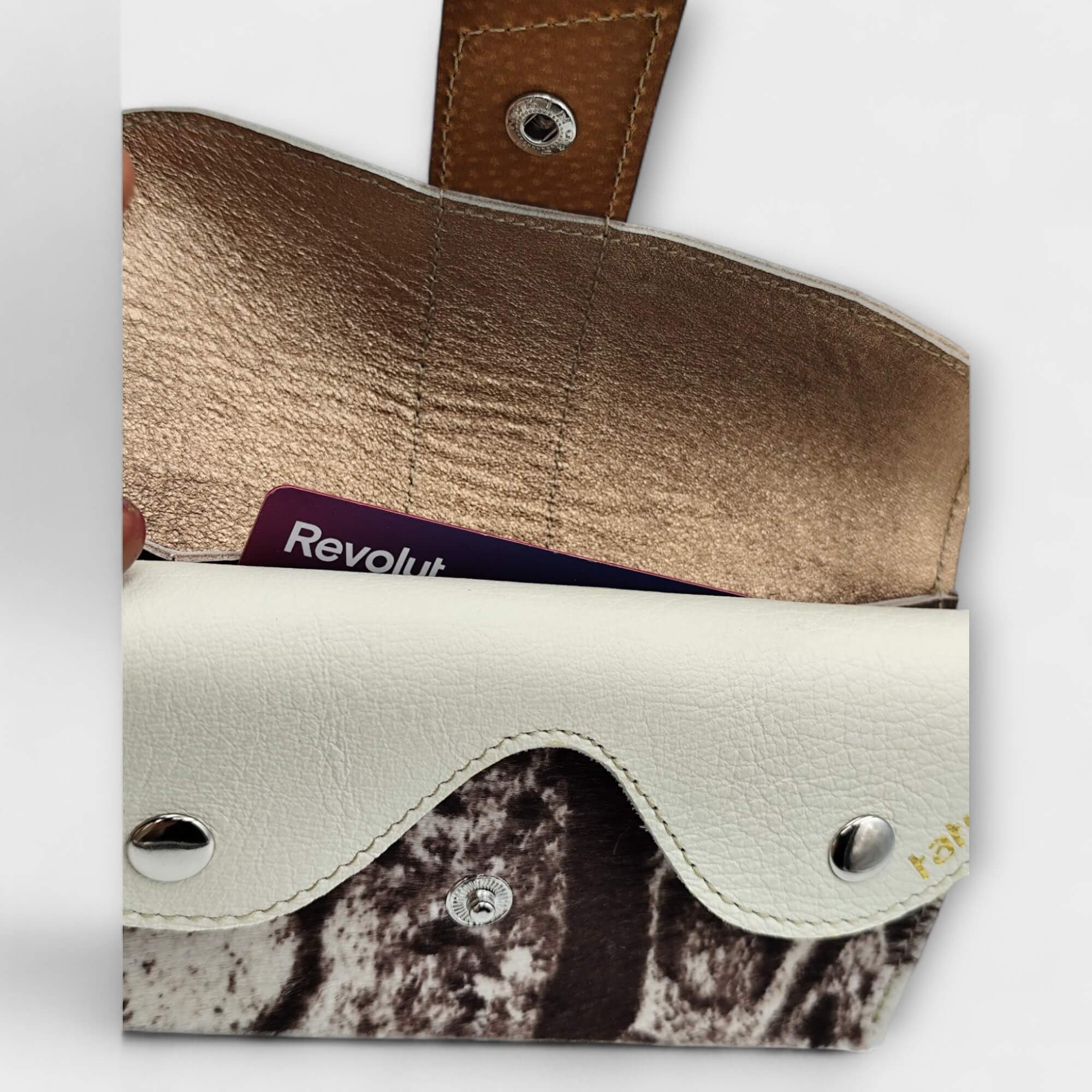 Rekeszek között 1-1 kártyatartó, melyben rekeszenként akár 5 db kártya is elfét. A pénztárca mérete lehetővé teszi, hogy a termékeim mözött megtalálható kis kártyatartó is helyet kapjon benne, így kényelmesen kivehetőek a legfontosabb kártyák, és ha csak leugrasz kutyát sétáltani, vagy  vásárolni, elég zsebre raknod az igazolványokat.