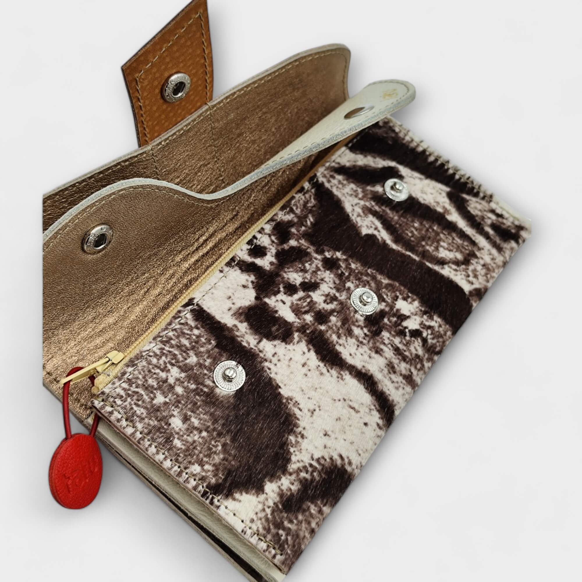 Szín: bronzfényű barna bőr, vajszín, vaj-barna foltos festett szőr