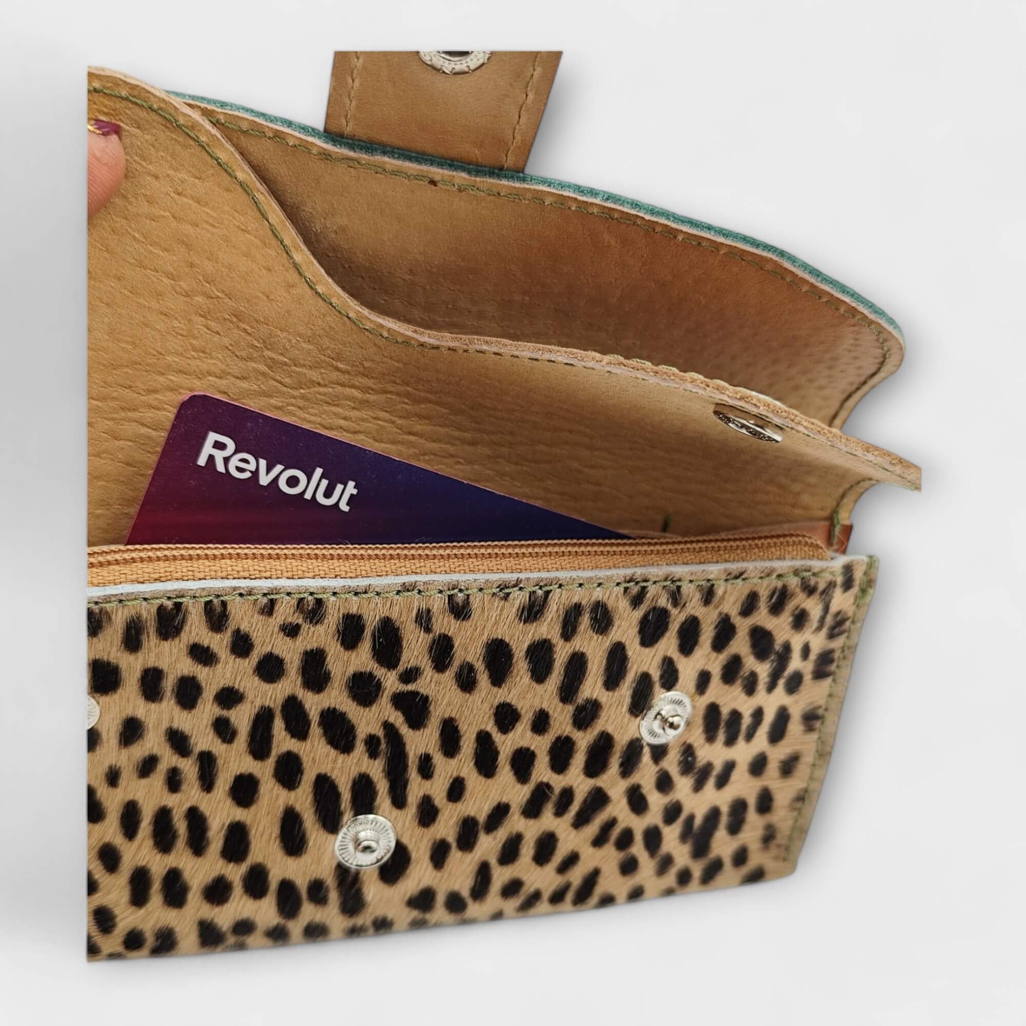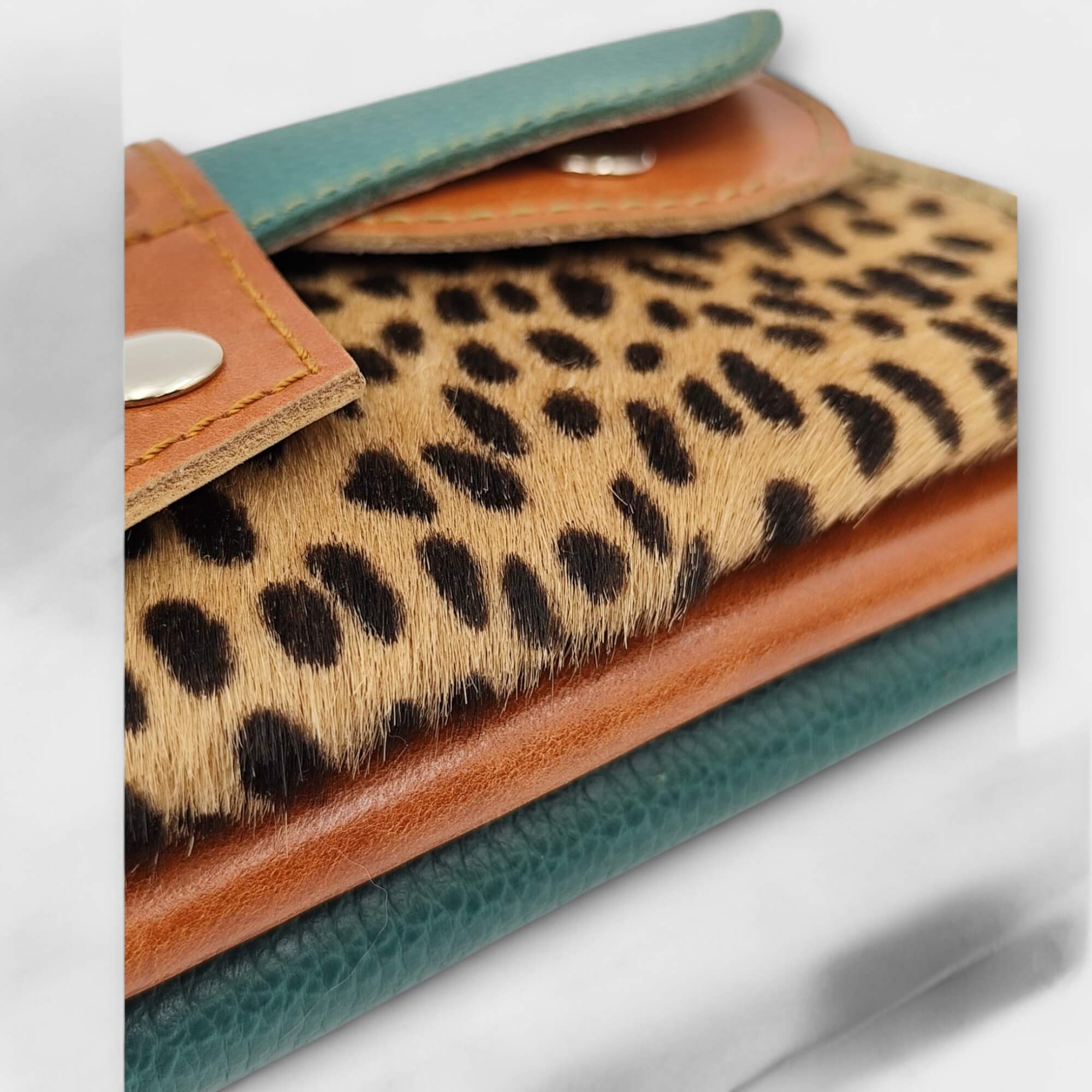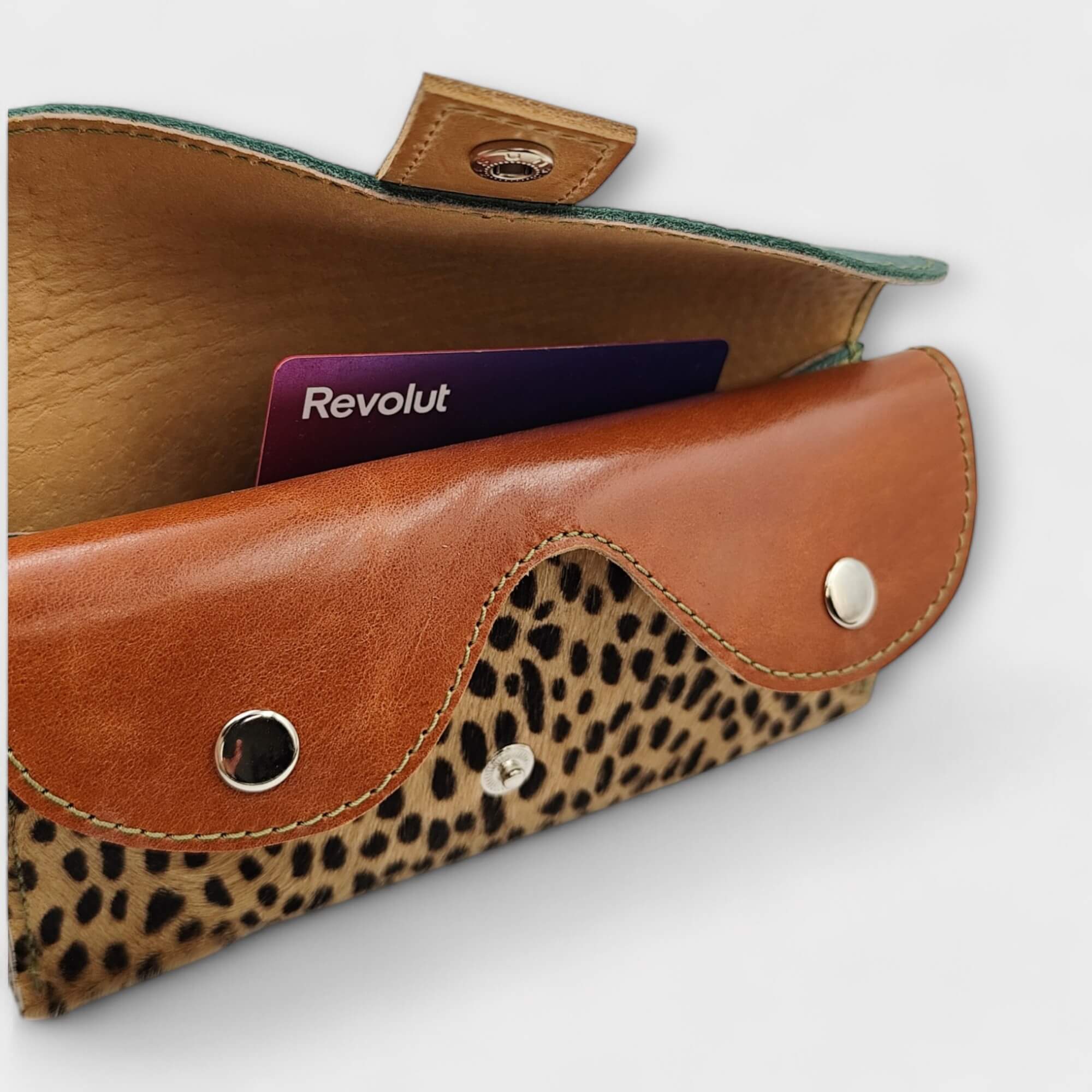 Szín: türkiz zöld, konyak barna, gepárd mintás pöttyös festett szőr