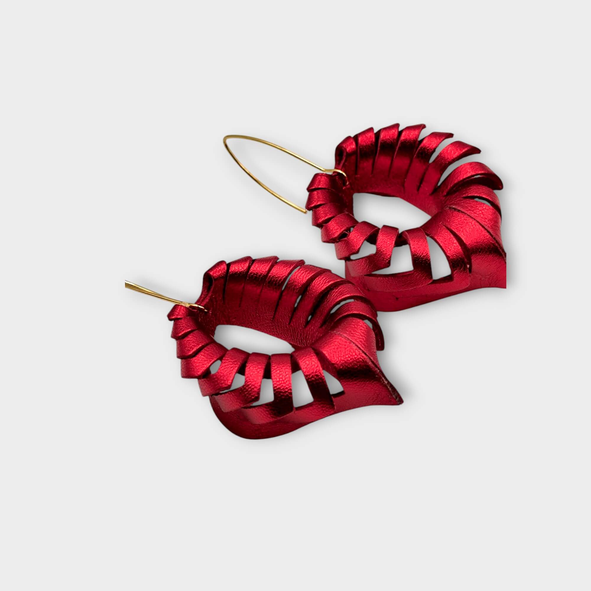 Bőr fülbevaló metálpiros színben ..tatu.. 3D formvilágában, szeretek játszani a formákkal és a térrel egyben