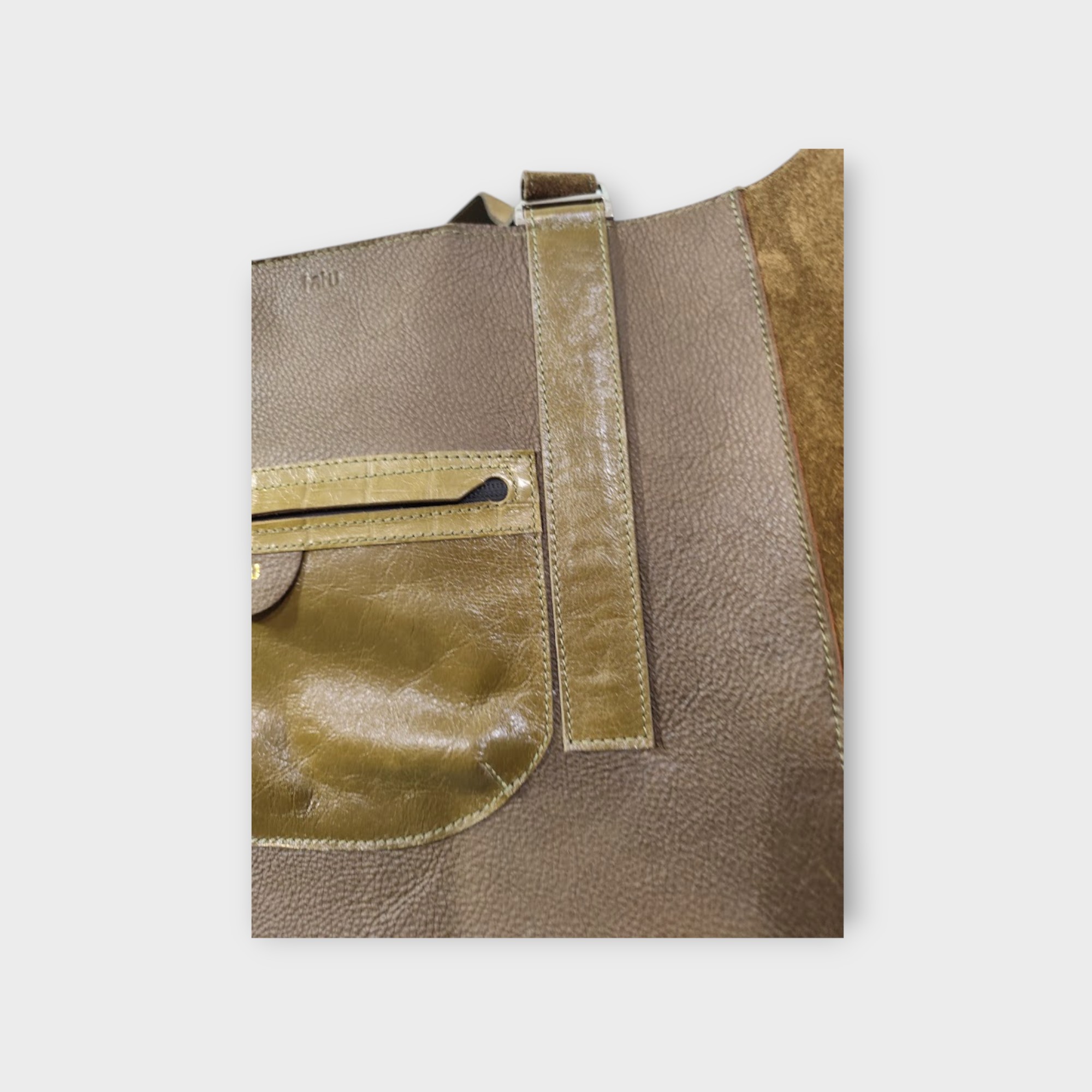 Classic collekció jegyeit viselve az elején aszimmetrikus jellegzetes pánntal. Nagy bőr válltáska, igazán jól pakolható , belsejében 1 db belsőzseb, táska külső profilján 1 ddb cipzáros zseb. A táska olsalsó bővítése rejtett mágnesekkel kifeléhajtva és befelé hajtva formázható a táska a pakolásnak megfelelően.