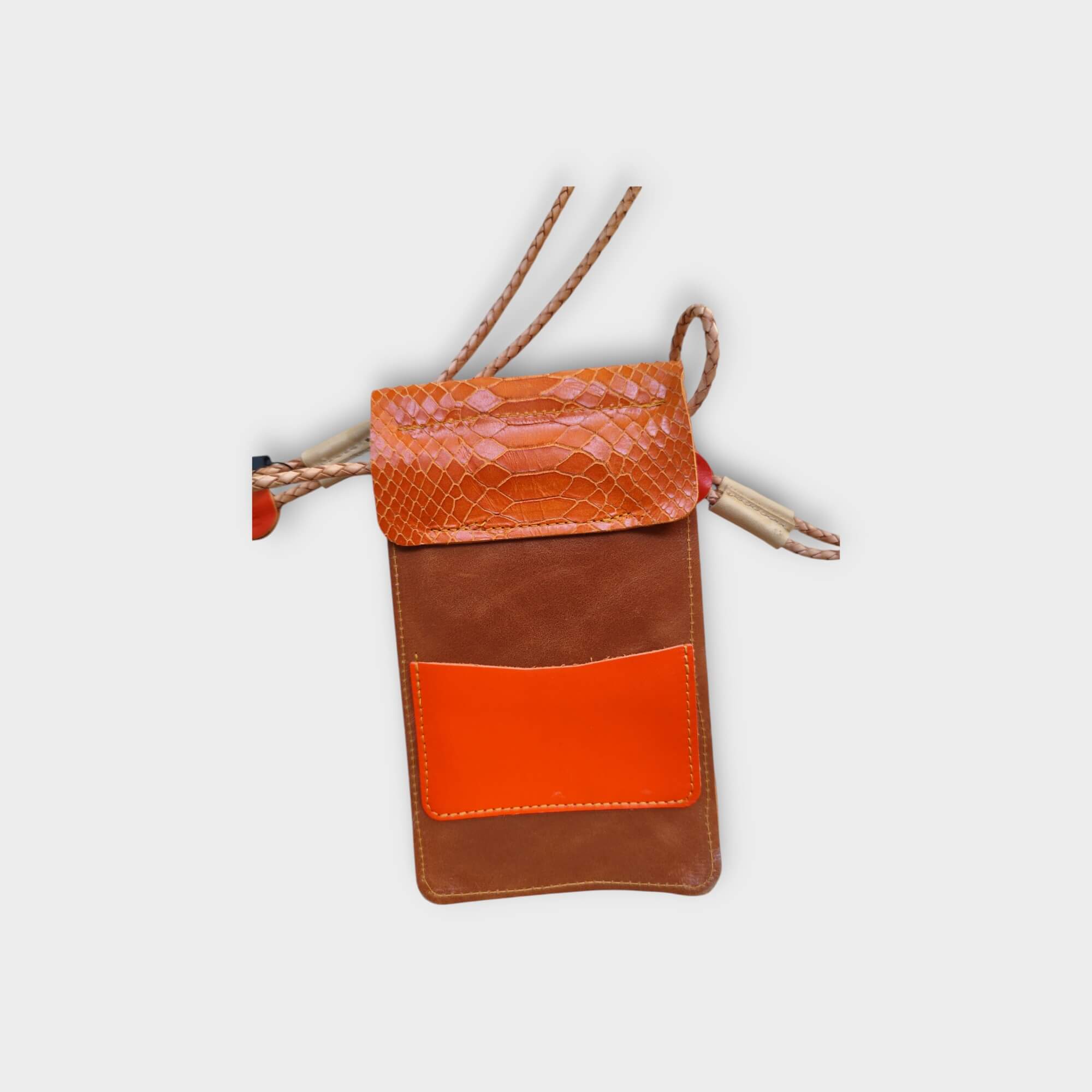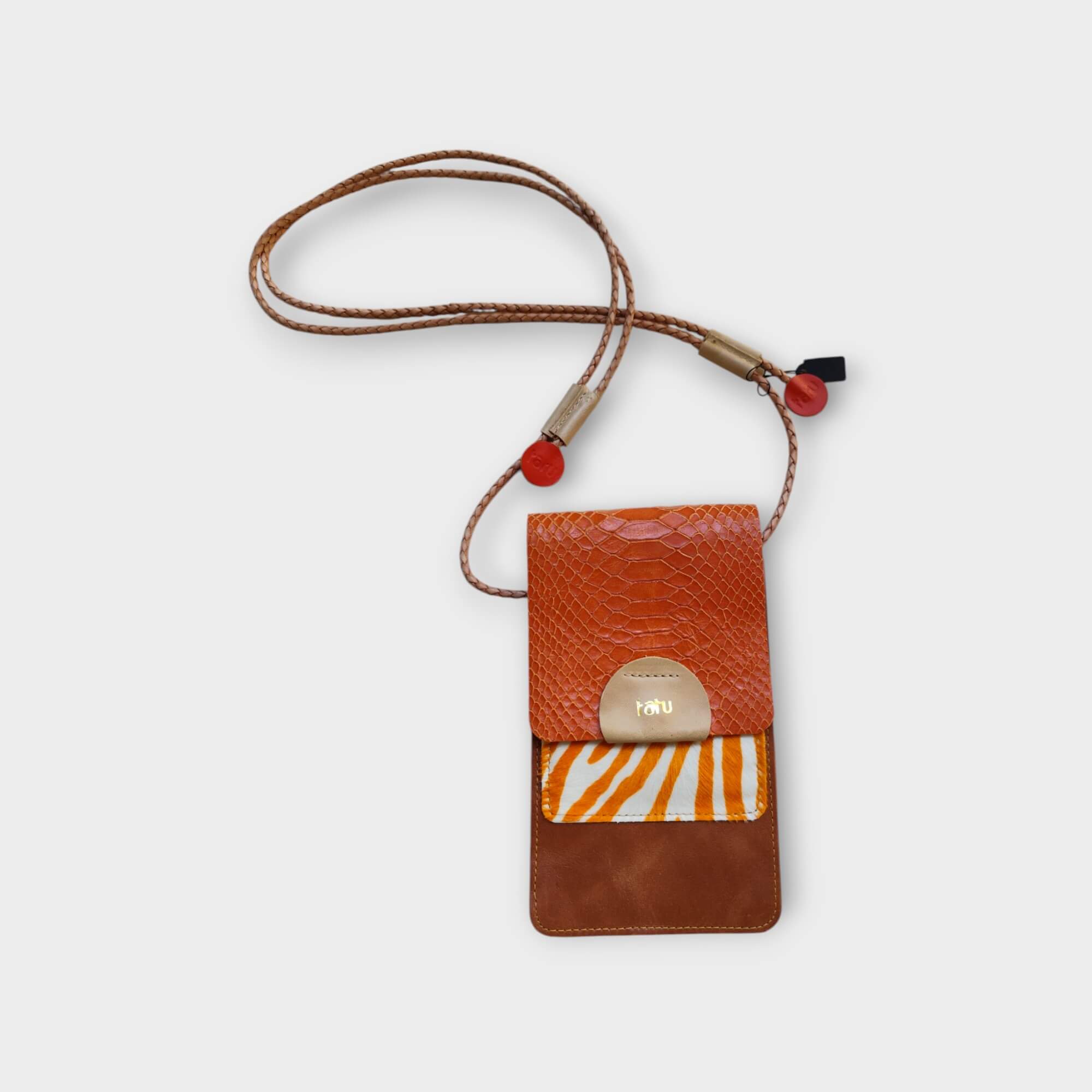anyaga: konyak marhabőr, narancs kígyóbőr hatású mart marhabőr, narancs-fehér kecskeszőr zebra mintával