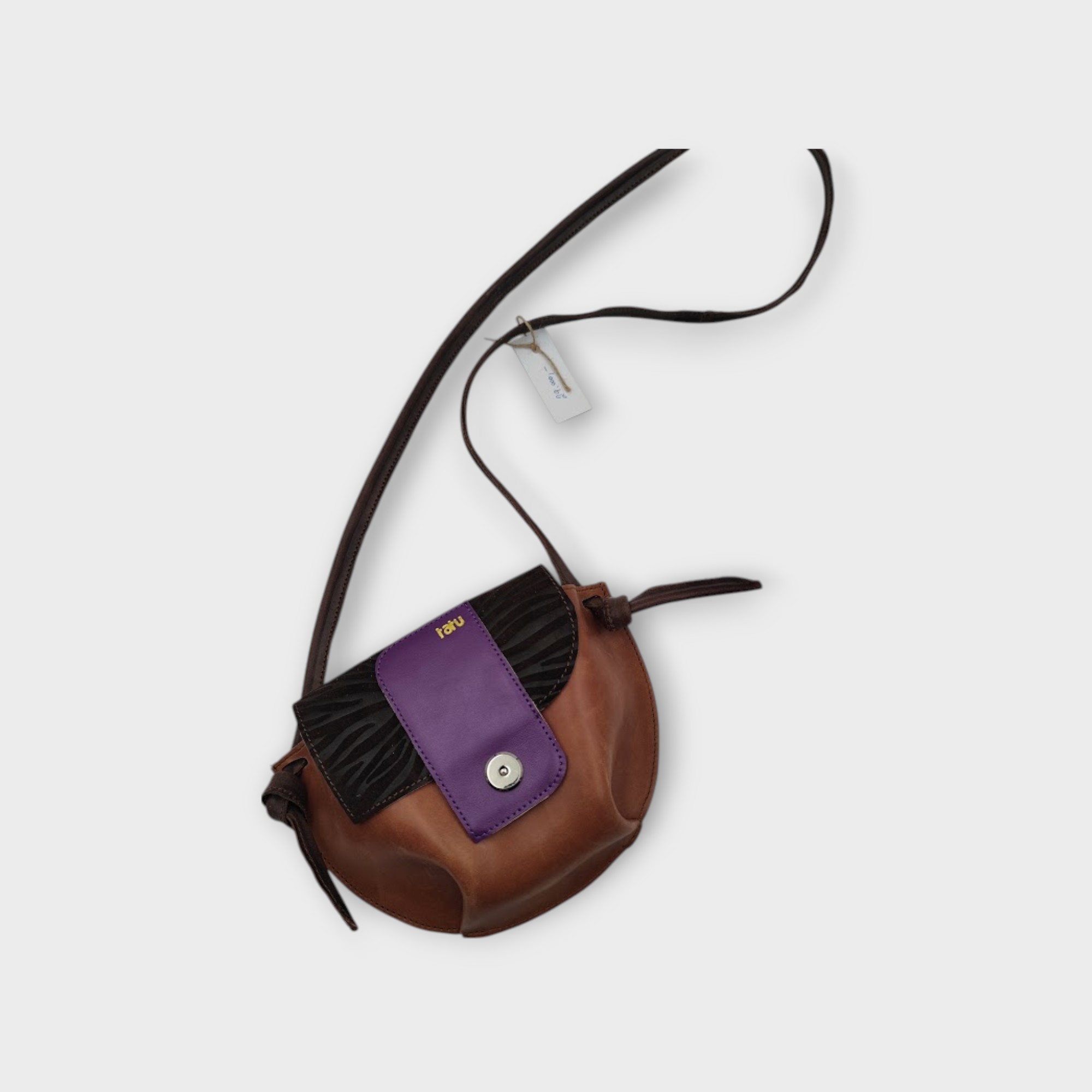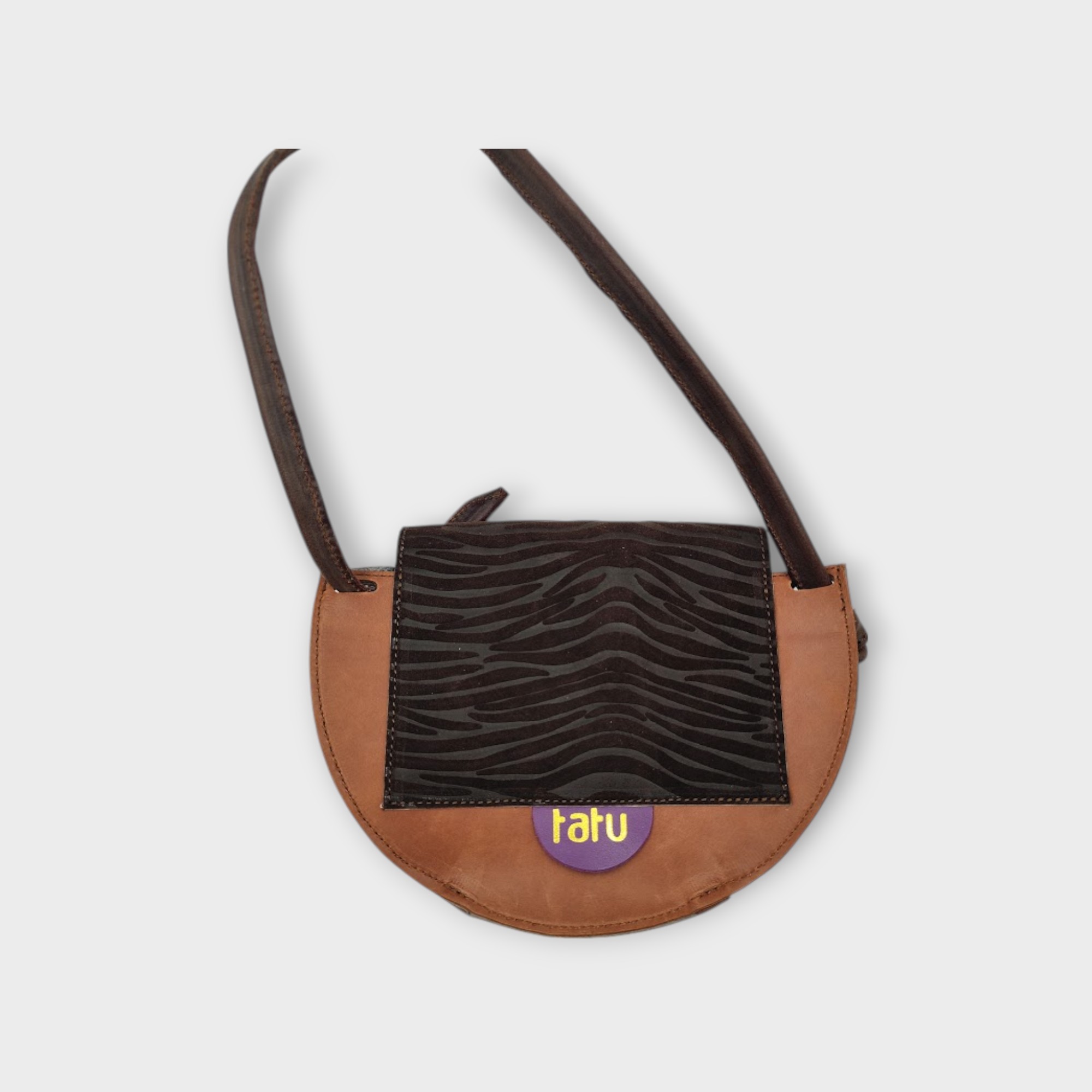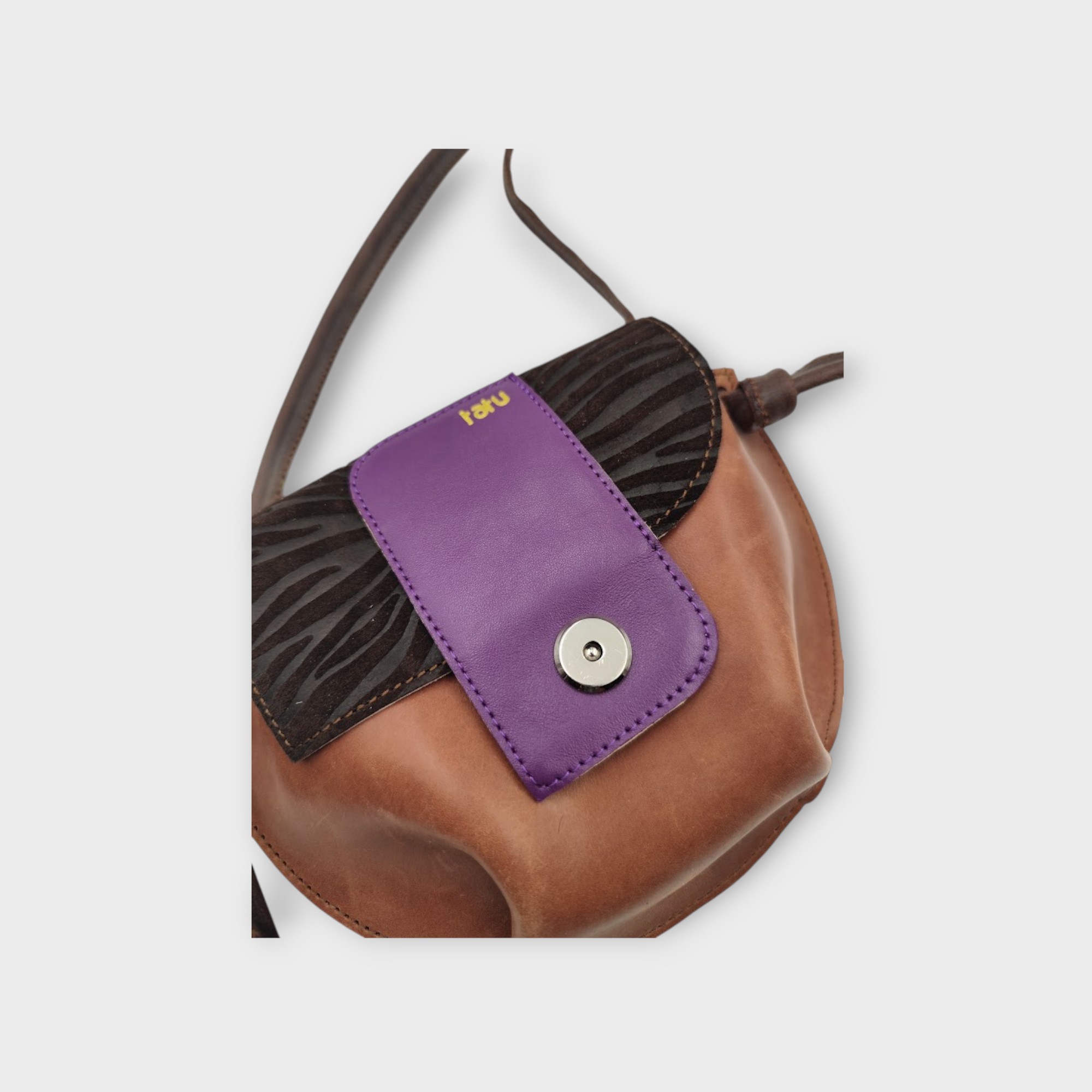A kistáska tervezésénél a praktikusságot vettem figyelembe, a fedlap szabásának játékával helyet kapott egy belső zseb, mely tökéletesen kompatibilis a tatu MINI pénztárcával, a fő rekeszben kényelmesen elfér telefon kulcs és még pár apróság.