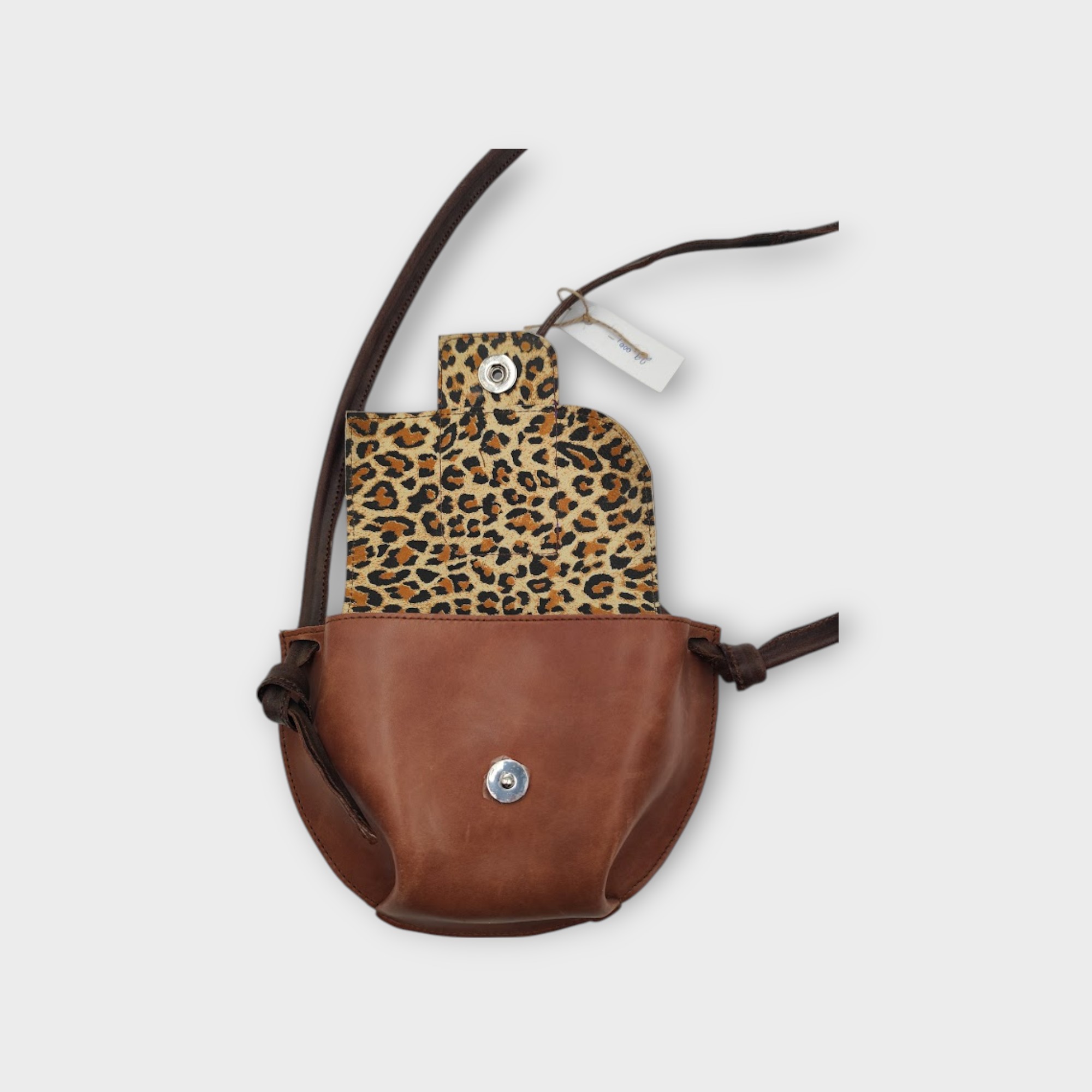 Bőr táskáimon igyekszem kerülni a fém kellékeket, így a vállpánt rögzítése egy csomó mely design elemként is funkcionál.