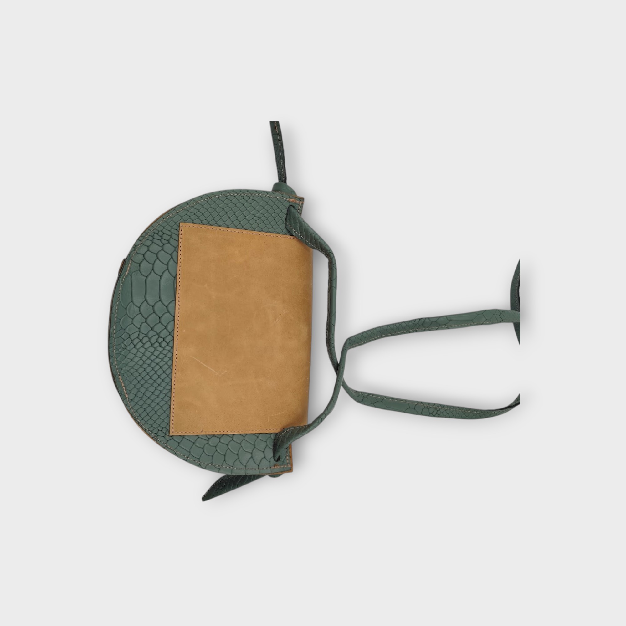 Bőr táskáimon igyekszem kerülni a fém kellékeket, így a vállpánt rögzítése egy csomó mely design elemként is funkcionál.
