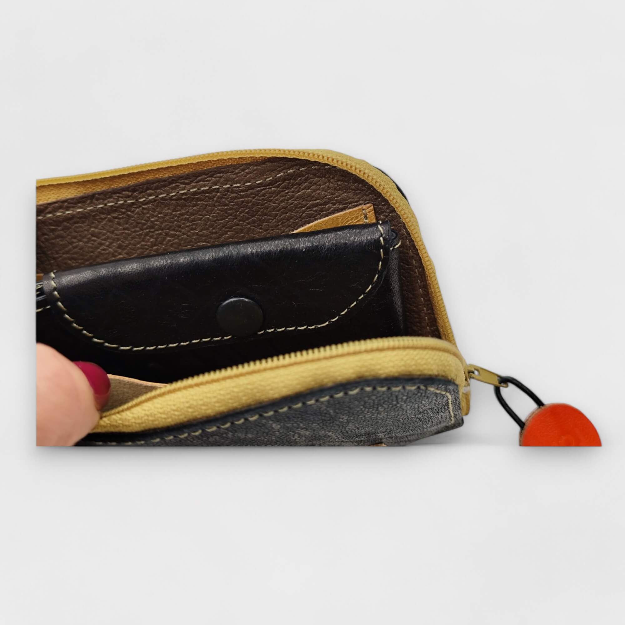 Legkedveltebb kis pénztárca, melyben helyet kap 2 db kártyatartó, aprótartó és egyébként jól megtömhető.