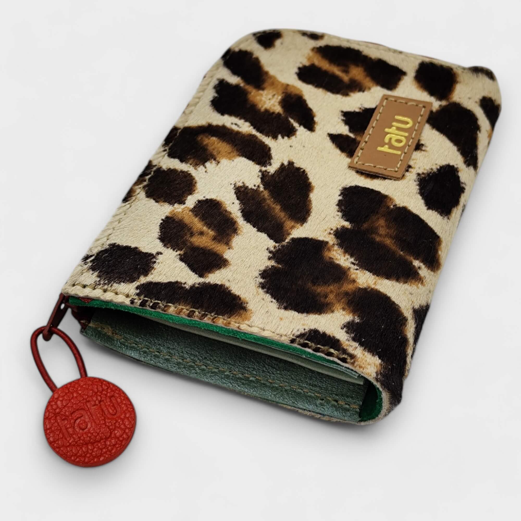anyag-szín:leopárd mintás vaj színú szőr, zöld bőr, terrakott a cipzár jellegzetes cipzárhúzó logozva